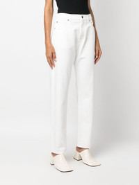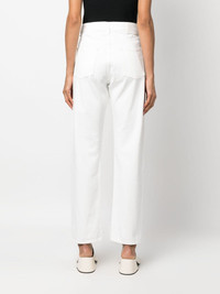 Wular high-rise straight-leg jeans Highlights - Ivory white - Organic cotton - Logo patch to the rear - Metal eyelet detailing - Belt loops - High waist - Straight leg - Concealed fly and button fastening - Classic five pockets - Straight hem Made in Italy Composition Organic Cotton 100% SIZE & FIT Model measurements Height 5 ft 10 in(1.78 m) Bust/Chest 33.07 in(84 cm) Hips 36.61 in(93 cm) Waist 24.8 in(63 cm) FittingInformation Designed for a straight-leg fit, these jeans allow for a close fit at the waist and an unrestricted and comfortable fit over the leg Sturdy and hard-wearing, this denim piece offers no stretch This piece fits true to size – take your usual size Measurement FRONT RISE 12.99 in(33 cm) WAIST 29.13 in(74 cm) HIPS 39.37 in(100 cm) Washing instructions Machine Wash