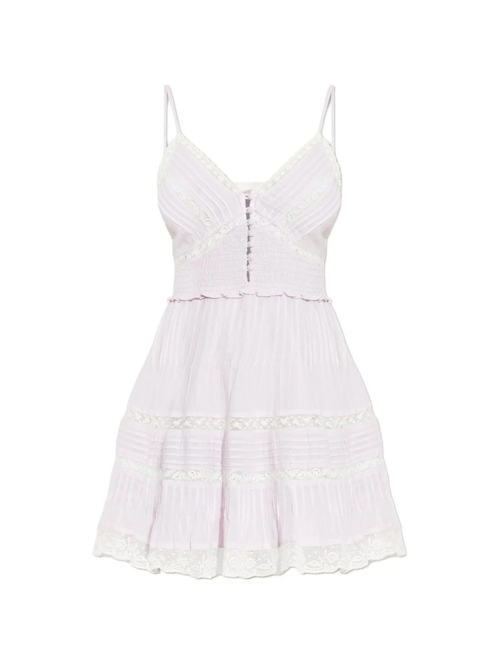 Krista lace-detail smocked mini dress Highlights - Pink orchid - Lace trim - Pleated skirt - Button detail - Thin straps - Smocked detail Imported Composition Cotton 100% Washing instructions Read Manufacturer Guidelines