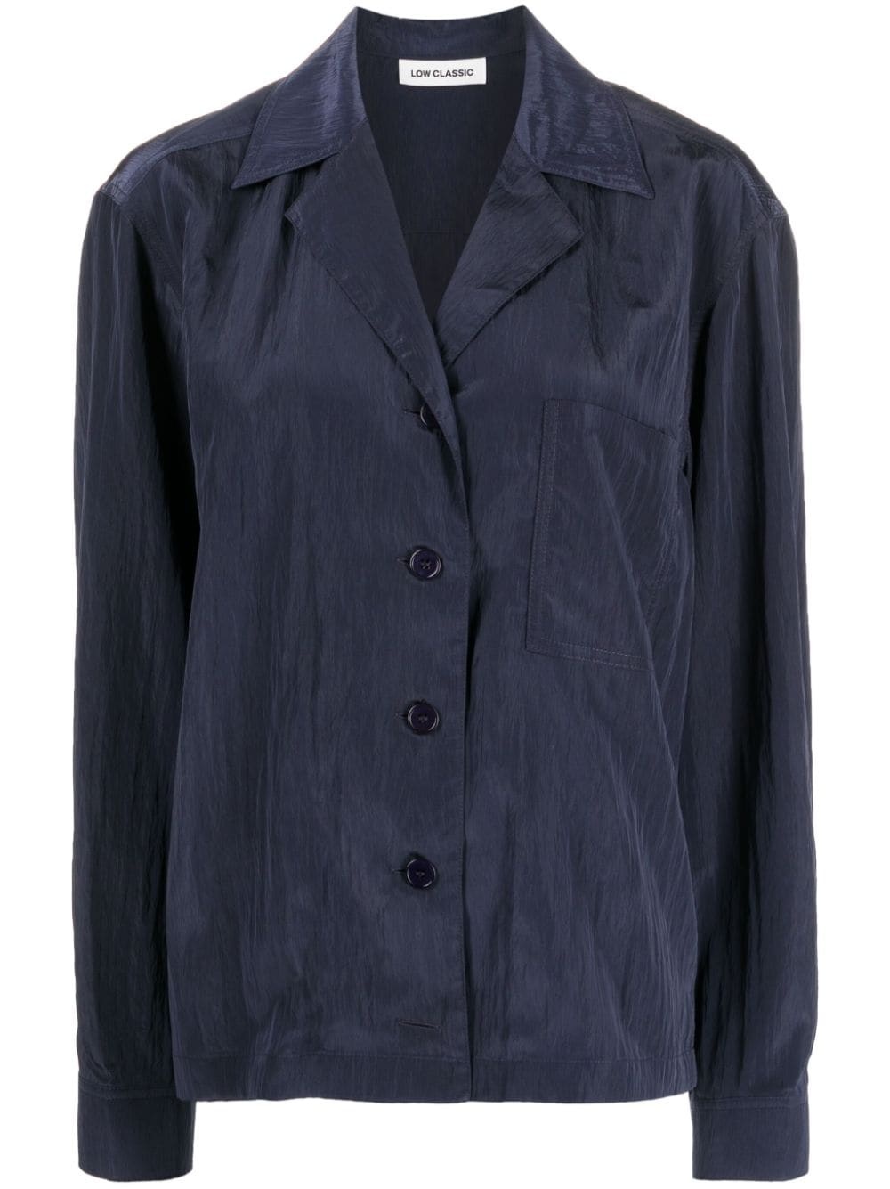 camp-collar crinkled shirt Highlights - Navy blue - Crinkled finish - Camp collar - Front button fastening - Long sleeves - Chest patch pocket - Straight hem Imported Composition Body: Polyester 79%, Nylon 21% SIZE & FIT Model measurements Height 5 ft 10 in(1.77 m) Bust/Chest 31.49 in(80 cm) Hips 35.43 in(90 cm) Waist 25.19 in(64 cm) FittingInformation Designed for a relaxed fit, this piece allows for comfort and movement when worn Made from a lightweight non-stretch fabric This piece fits true to size – take your usual size Washing instructions Dry Clean Only