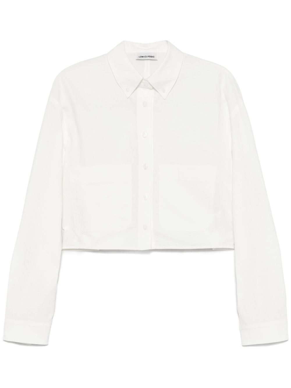 cropped top Highlights - White - Front button placket - Button-down collar - Buttoned cuffs - Box-pleat detail Imported Composition Cotton 98%, Polyurethane 2% SIZE & FIT Model measurements Height 5 ft 10 in(1.78 m) Bust/Chest 33.46 in(85 cm) Hips 36.22 in(92 cm) Waist 23.22 in(59 cm) FittingInformation Designed to be unstructured, offering a loose fit throughout Made from a midweight non-stretch fabric, this piece offers minimal elasticity when worn