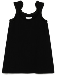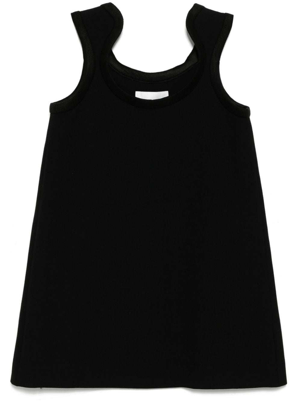 curve ribbed wool mini dress Highlights - Black - Wool - Ribbed trim - Scoop neck - Sleeveless - Straight hem - Full lining Imported Composition Outer: Wool 100% Lining: Polyester 100%