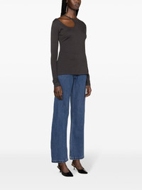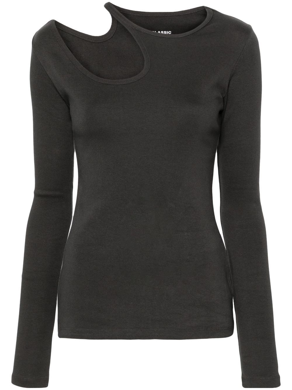 cut-out detail top Highlights - Dark grey - Cotton blend - Stretch-design - Round neck - Cut-out detailing - Long sleeves - Straight hem - Pull-on style Imported Composition Cotton 99%, Polyurethane 1% SIZE & FIT FittingInformation Designed for a close fit throughout Made from a midweight non-stretch fabric, this piece offers minimal elasticity when worn This piece fits true to size – take your usual size Washing instructions Dry Clean Only