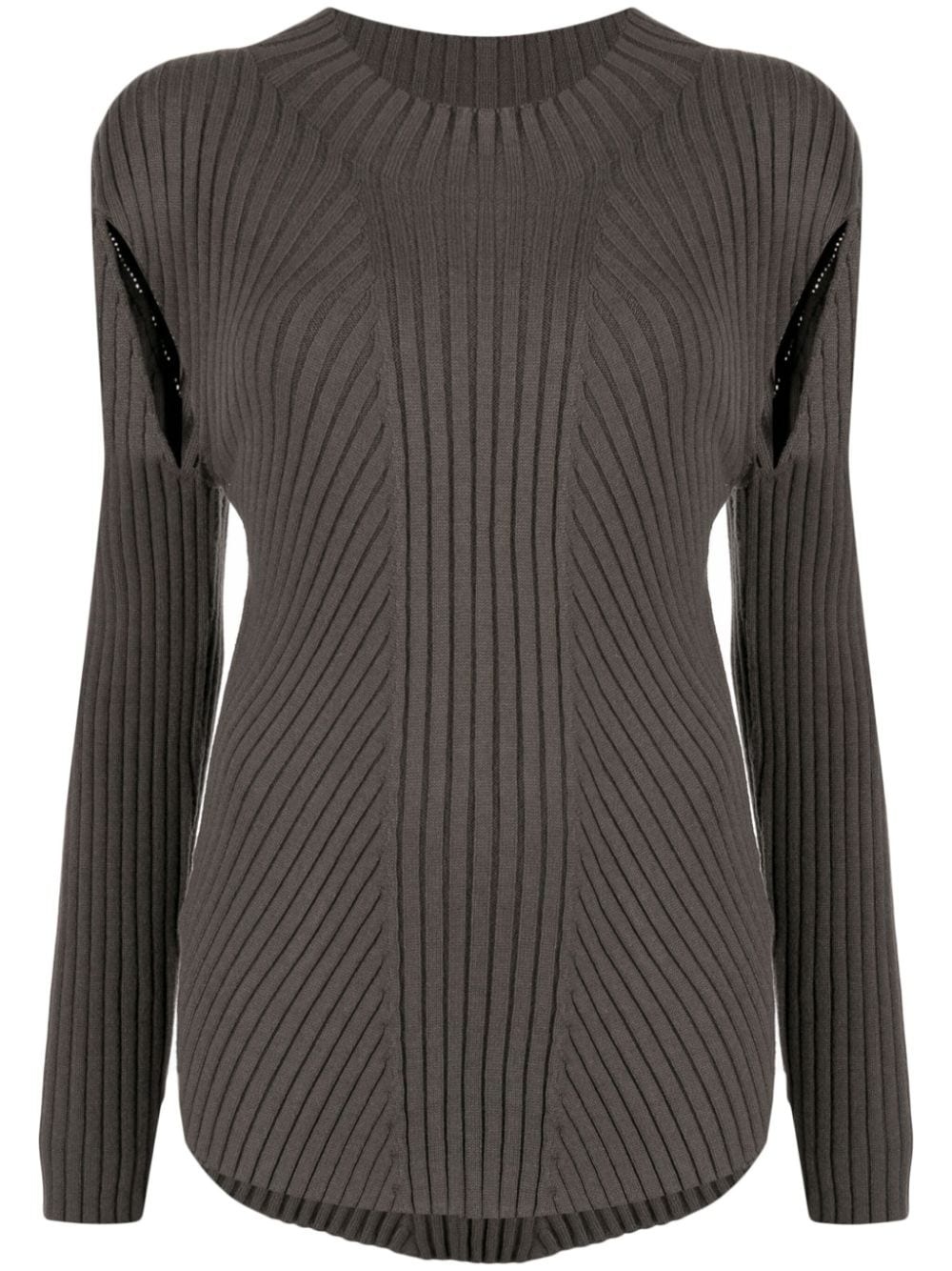 cut-out detailing ribbed-knit jumper Highlights - Taupe brown - Knitted construction - Ribbed knit - Cut-out detailing - Crew neck - Long sleeves - Curved hem Imported Composition Acrylic 51%, Polyester 27%, Wool 22% SIZE & FIT Model measurements Height 5 ft 10 in(1.77 m) Bust/Chest 31.49 in(80 cm) Hips 35.43 in(90 cm) Waist 25.19 in(64 cm) FittingInformation Designed to be unstructured, offering a loose fit throughout Made with a midweight knit, this piece offers some stretch This piece fits true to size – take your usual size Washing instructions Dry Clean Only