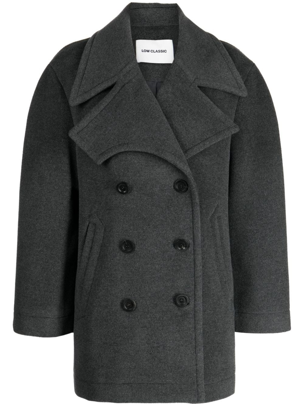 notched-lapels double-breasted coat Highlights - Ash grey - Wool blend - Notched lapels - Double-breasted button fastening - Long sleeves - Two side welt pockets - Long sleeves - Straight hem Imported Composition Outer: Wool 90%, Nylon 10% Lining: Polyester 100% SIZE & FIT Model measurements Height 5 ft 10 in(1.77 m) Bust/Chest 31.49 in(80 cm) Hips 35.43 in(90 cm) Waist 25.19 in(64 cm) FittingInformation Designed to be unstructured, offering a loose fit throughout Made from a heavyweight non-stretch fabric This piece fits true to size – take your usual size Washing instructions Dry Clean Only