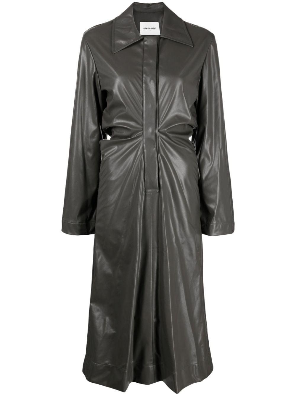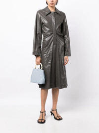 ruched faux-leather shirt dress