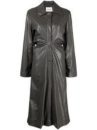ruched faux-leather shirt dress Highlights - Khaki - Faux leather - Smooth grain - Flared - Ruched detailing - Spread collar - Concealed front fastening - Long sleeves - Mid-length Imported Composition Outer: Polyester 100% Lining: Polyurethane 100% SIZE & FIT Model measurements Height 5 ft 10 in(1.77 m) Bust/Chest 31.49 in(80 cm) Hips 35.43 in(90 cm) Waist 25.19 in(64 cm) FittingInformation Designed for a slim fit that sits just away from the body offering a close yet comfortable fit Made from a midweight non-stretch fabric, this piece offers minimal elasticity when worn This piece fits true to size – take your usual size Washing instructions Dry Clean Only