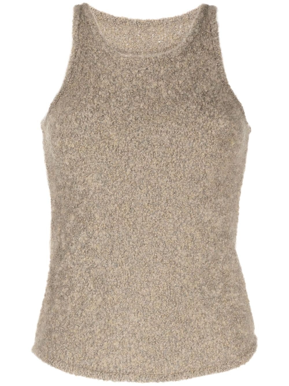 sleeveless fleece knitted top desert sage green wool blend fleece texture seam detailing racerback scoop neck sleeveless curved hem Imported Composition Wool 80%, Nylon 20% SIZE & FIT Model measurements Height 5 ft 10 in(1.77 m) Bust/Chest 31.49 in(80 cm) Hips 35.43 in(90 cm) Waist 25.19 in(64 cm) FittingInformation Designed for a slim fit that sits just away from the body offering a close yet comfortable fit Made with a midweight knit, this piece offers some stretch This piece fits true to size – take your usual size Washing instructions Machine Wash