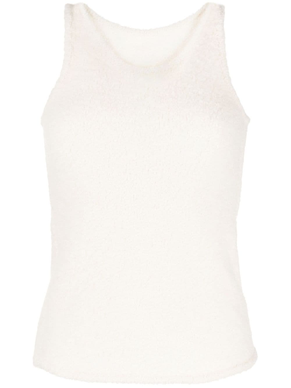 sleeveless fleece knitted top ivory white wool blend fleece texture seam detailing racerback scoop neck sleeveless curved hem Imported Composition Wool 80%, Nylon 20% SIZE & FIT Model measurements Height 5 ft 10 in(1.77 m) Bust/Chest 31.49 in(80 cm) Hips 35.43 in(90 cm) Waist 25.19 in(64 cm) FittingInformation Designed for a slim fit that sits just away from the body offering a close yet comfortable fit Made with a midweight knit, this piece offers some stretch This piece fits true to size – take your usual size Washing instructions Machine Wash