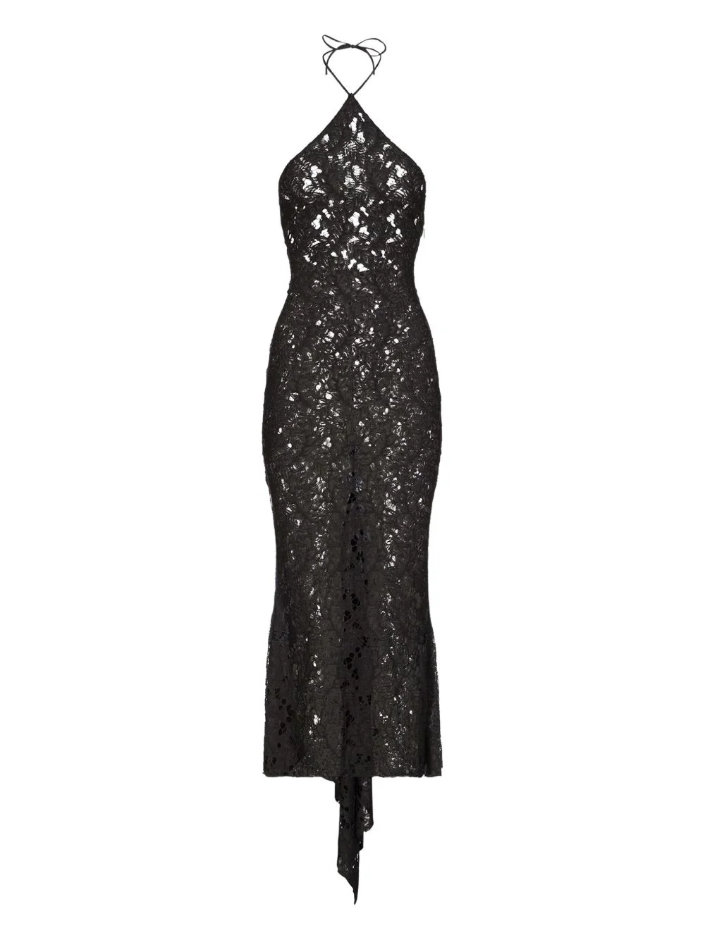 Anthonia lace midi dress Highlights - Black - Tie fastening - Unlined - Hidden zipper - Halter neckline Made in France Composition Rayon 64%, Polyester 36% Washing instructions Read Manufacturer Guidelines