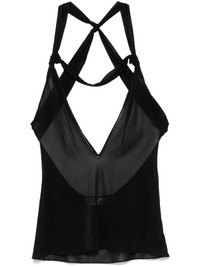 Carrie top Highlights - Black - V-neck - Crossover strap detail - Knot detailing Made in France Composition Cupro 92%, Spandex/Elastane 8% SIZE & FIT Model measurements Height 5 ft 11 in(1.8 m) Bust/Chest 31.49 in(80 cm) Hips 36.61 in(93 cm) Waist 24.4 in(62 cm) FittingInformation Designed for a close fit throughout Made from a lightweight stretch fabric, this piece offers elasticity and flexibility when worn Washing instructions Dry Clean Only