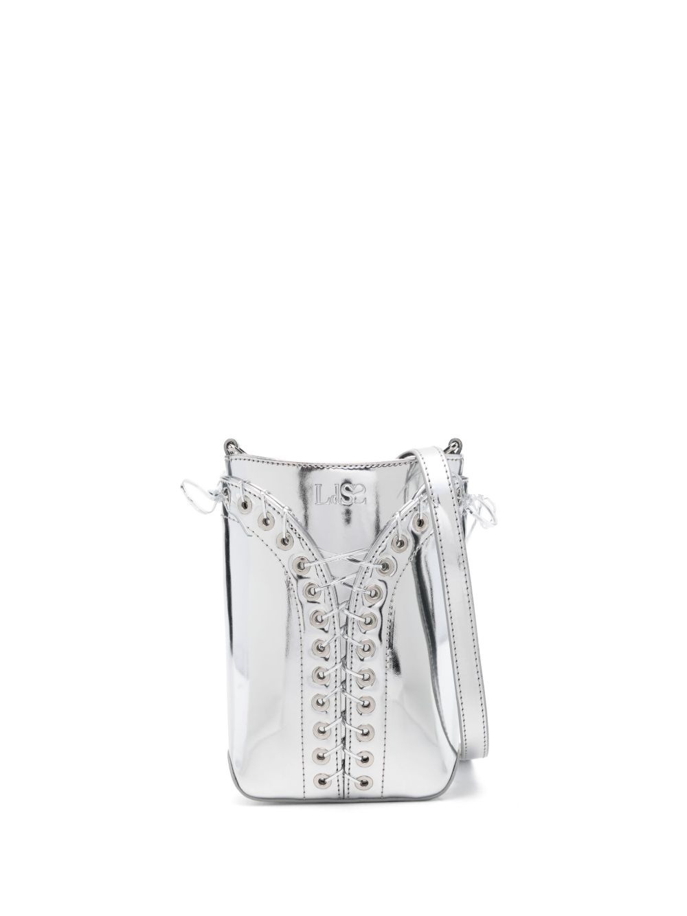 Cleavage crossbody bag Highlights - Silver-tone - Lambskin - Mirrored finish - Single shoulder strap - Corset design - Debossed logo to the front - Main compartment - Internal patch pocket - Full lining Imported Composition Outer: Lamb Skin 100% SIZE & FIT Model measurements Height 5 ft 9 in(1.75 m) Bust/Chest 31.88 in(81 cm) Hips 34.64 in(88 cm) Waist 24.01 in(61 cm) Measurement DEPTH 1.96 in(5 cm) HEIGHT 7.08 in(18 cm) STRAP 45.27 in(115 cm) WIDTH 5.11 in(13 cm)