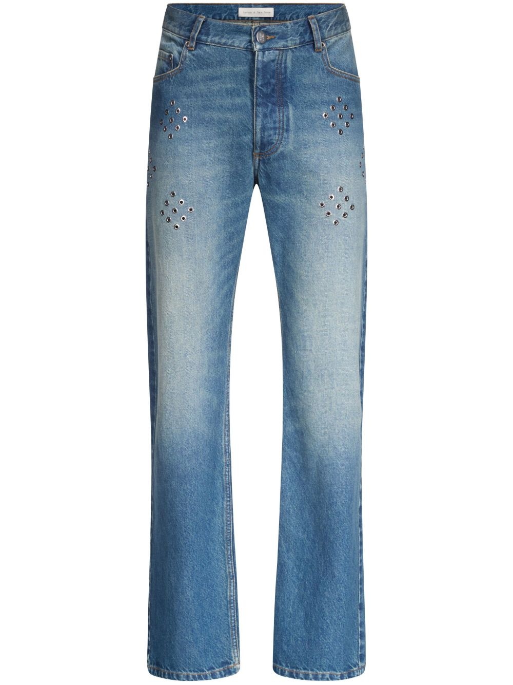 eyelet-embellished jeans Highlights - Cerulean blue - Concealed fly and button fastening - Belt loops - Classic five pockets - When buying this unisex item, keep in mind that it is graded in standard men's sizing. Imported Composition Cotton 100%