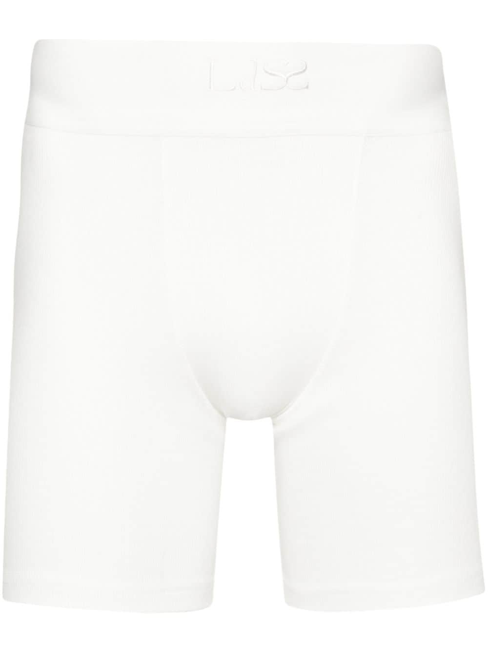 logo-embroidered cyclist shorts Highlights - White - Organic cotton blend - Stretch-design - Fine ribbed - Exposed-seam detailing - Embroidered logo to the front - Thigh-length - Elasticated waistband Imported Composition Organic Cotton 94%, Elastane 6%