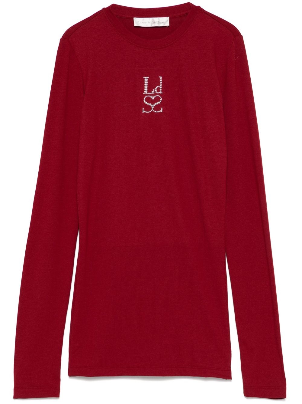 logo-studded T-shirt Highlights - Brick red - Crew neck - Long sleeves - When buying this unisex item, keep in mind that it is graded in standard men's sizing. Imported Composition Polyester 47%, Viscose 47%, Elastane 6%