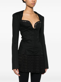 Rebecca jacket Highlights - Black - Cotton - Twill weave - Front hook and eye fastening - Lace-up detailing - Sweetheart neck - Shoulder pads - Long sleeves - Split cuffs - Fitted waistline - Straight hem Made in France Composition Cotton 100% SIZE & FIT Model measurements Height 5 ft 10 in(1.77 m) Bust/Chest 28.74 in(73 cm) Hips 35.03 in(89 cm) Waist 23.62 in(60 cm) FittingInformation Designed for a close fit throughout The internal shoulder pads offer a structured shape Made from a midweight non-stretch fabric