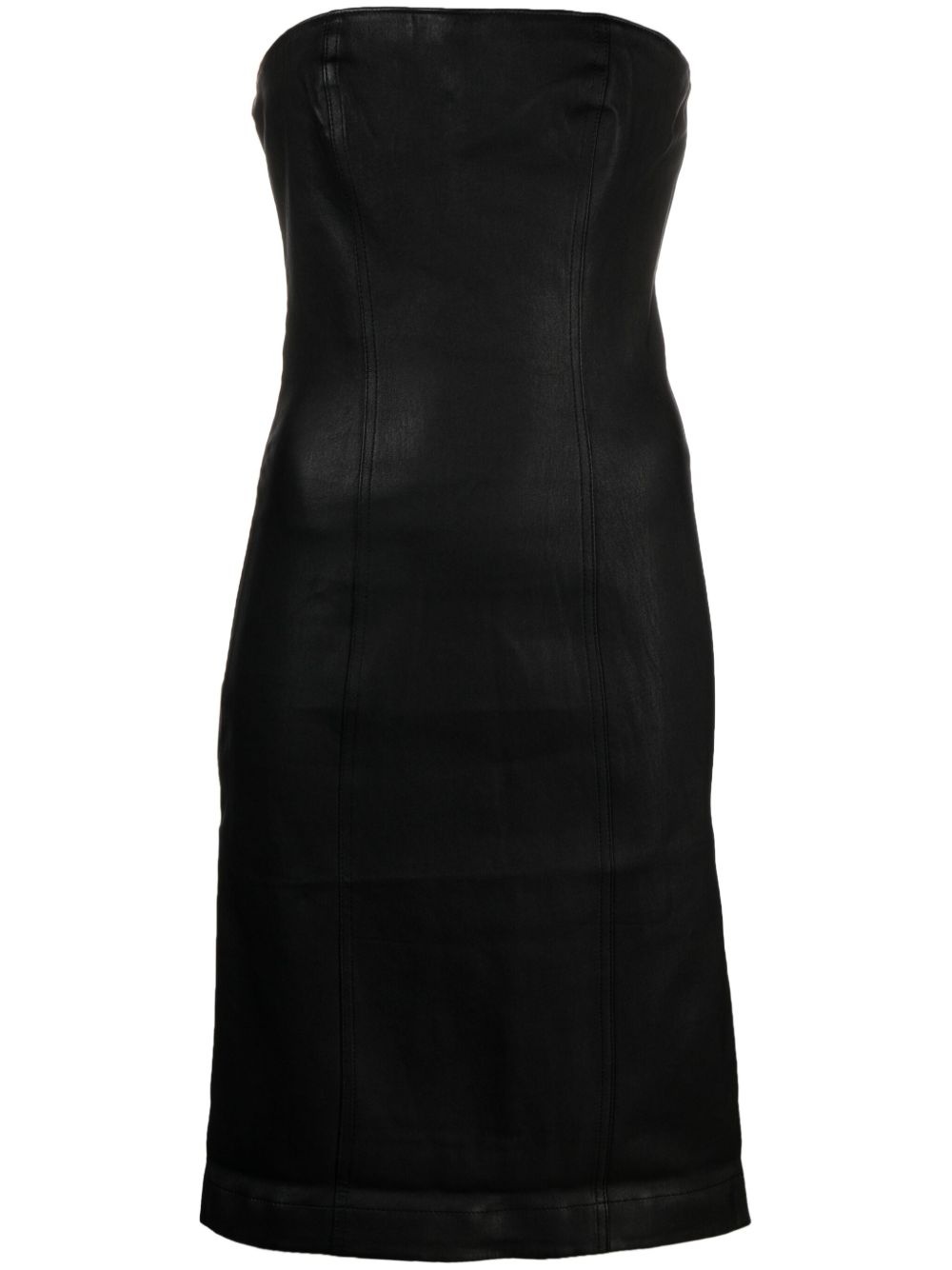 strapless leather minidress