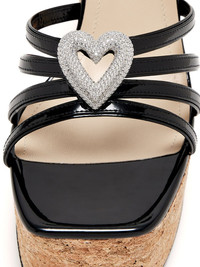 120mm double-embellished heart sandals Highlights - Black - Buckle-fastening ankle strap - Multi-way straps - Heart charm - Cork sole Made in Italy Composition Outer: Patent Leather 100% Lining: Calf Leather 100% Sole: Rubber 100% SIZE & FIT Measurement HEEL 4.72 in(12 cm)