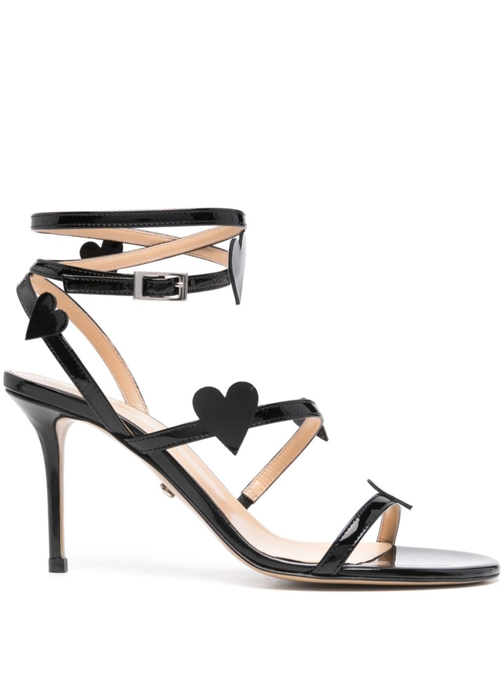 75mm Petit Coeur sandals Highlights - Black - Calf leather - Patent finish - Round open toe - Multi-way straps - Heart motif - Branded footbed - Mid heel - Leather sole - Buckle-fastening ankle strap Made in Italy Composition Sole: Rubber 100%, Calf Leather 100% Lining: Calf Leather 100% Outer: Patent Calf Leather 100% SIZE & FIT Measurement HEEL 2.95 in(7.5 cm)