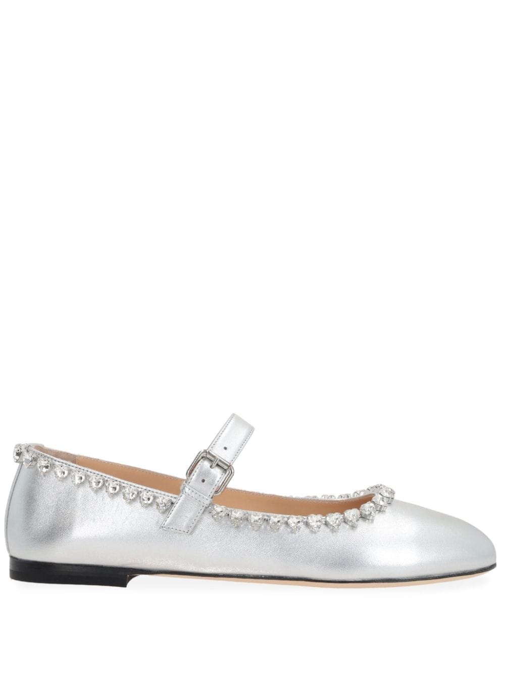 Audrey crystal-embellished ballet pumps Highlights - Silver - Calf leather - Metallic finish - Heart motif - Crystal embellishment - Round toe - Front buckle fastening - Branded leather insole - Rubber sole Made in Italy Composition Sole: Rubber 100%, Calf Leather 100% Lining: Calf Leather 100% Outer: Lamb Skin 100%