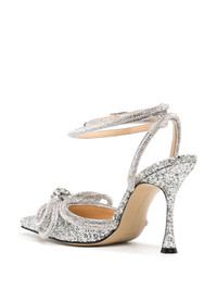 crystal-embellished bow pumps Adding a signature opulent finish, these MACH & MACH pumps are distinguished by the brand's iconic crystal-embellished bow on the front. Crystal trims extend across this glitter silver-tone iteration, creating a further eye-catching aesthetic. Highlights - Silver-tone - Leather - Glitter detailing - Bow detailing - Ankle strap - Pointed toe - High sculpted heel Made in Italy Composition Outer: Leather 100% Lining: Leather 100% Sole: Leather 100% SIZE & FIT Measurement HEEL 3.54 in(9 cm)
