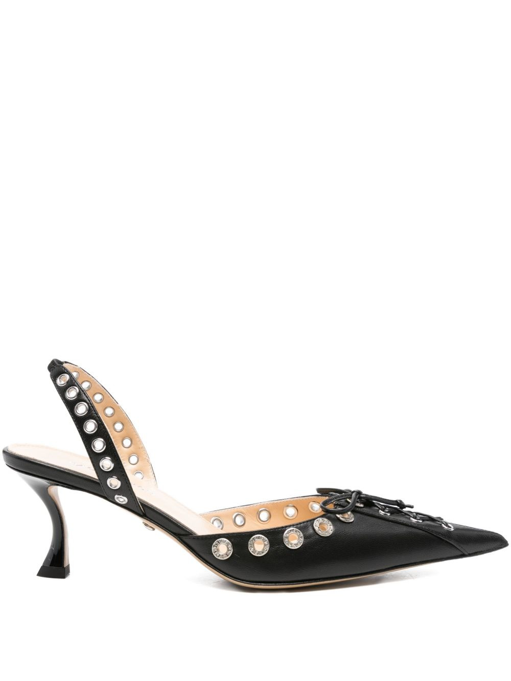 crystal-embellished lace-up pumps Highlights - Black - Leather - Crystal embellishments - Lace-up vamp - Slingback design - Pointed toe Made in Italy Composition Outer: Calf Leather 100% Lining: Calf Leather 100% Sole: Calf Leather 100%, Rubber 100% SIZE & FIT Measurement HEEL 2.75 in(7 cm)