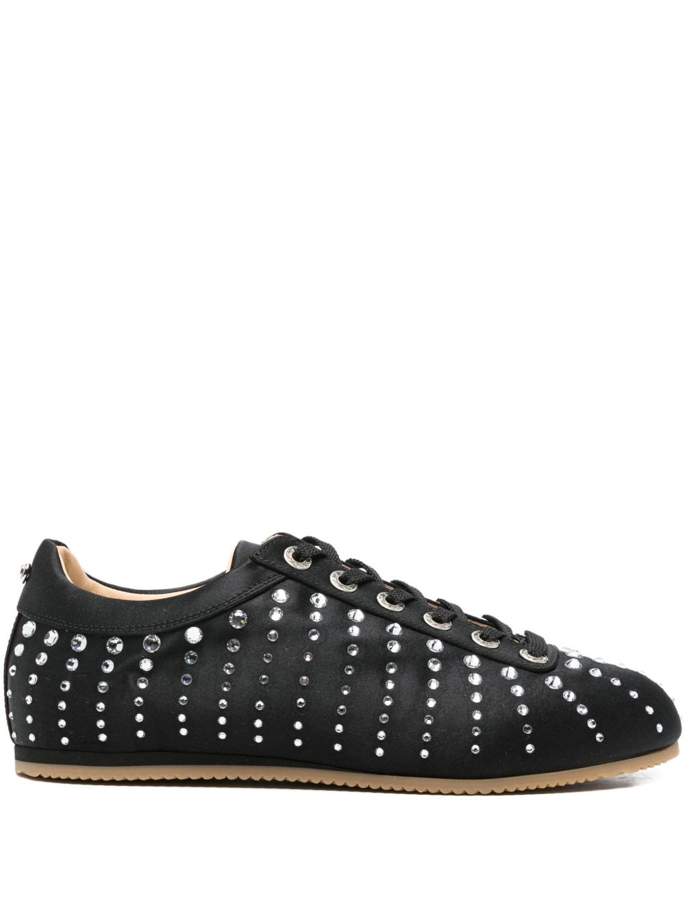 crystal-embellished lace-up sneakers Highlights - Black - Crystal embellishments - Lace-up fastening - Round toe - Flat sole Made in Italy Composition Lining: Kid Leather 100% Outer: Satin 100% Sole: Rubber 100%