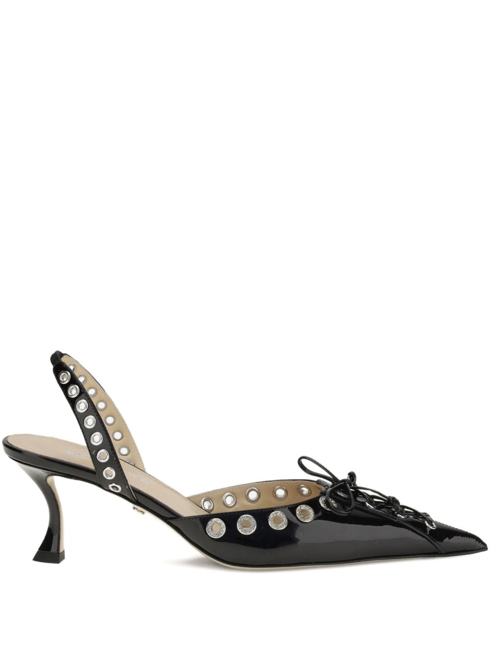 crystallised corset slingback pumps Highlights - Black - Pointed toe - Slingback strap - Eyelet detail - Lace-up detail Made in Italy Composition Outer: Calf Leather 100% Lining: Calf Leather 100% Sole: Calf Leather 100%