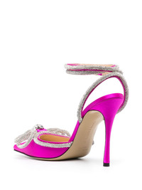 Double Bow 105mm satin pumps One of Mach & Mach's signature designs, these pumps are instantly recognisable thanks to the crystal-embellished double bow detail at the toe. The accent adds an extra glimmering touch to the pair, which is crafted in lustrous fuchsia pink silk satin. Highlights - Fuchsia pink - Calf leather - Silk satin - Crystal embellishment - Bow detailing - Buckle-fastening ankle strap - 105mm high stiletto heel Made in Italy Composition Silk 100% SIZE & FIT Measurement CIRCUMFERENCE 9.44 in(24 cm) HEEL 4.13 in(10.5 cm) HEIGHT 1.96 in(5 cm) Sole height 0.27 in(0.7 cm)