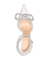 Double Bow 115mm satin pumps One of Mach & Mach's signature designs, these pumps are instantly recognisable thanks to the crystal-embellished double bow detail at the toe. The accent adds an extra glimmering touch to the pair, which is crafted in lustrous white silk satin. Made in Italy Composition Outer: Silk Satin 100% Lining: Leather 100% Sole: Leather 100% SIZE & FIT Measurement HEEL 4.52 in(11.5 cm) Sole height 0.39 in(1 cm)