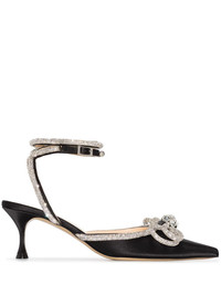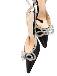 Double Bow 65mm crystal-embellished pumps Georgian footwear brand MACH & MACH creates eye-catching silhouettes for statement looks. Crafted from leather in a versatile black shade, the Double Bow pumps are adorned with glistening crystals and a bow detail at the front. With a pointed toe for a sharp shape, they fasten at the ankle with a buckle and sit atop a stiletto heel. Made in Italy Composition Outer: Satin 100% Lining: Leather 100% Sole: Leather 100% SIZE & FIT Model measurements Height 5 ft 10 in(1.78 m) Bust/Chest 30.7 in(78 cm) Hips 33.85 in(86 cm) Waist 22.44 in(57 cm) FittingInformation This piece fits true to size. We recommend you get your regular size Measurement HEEL 2.95 in(7.5 cm) Sole height 0.39 in(1 cm)