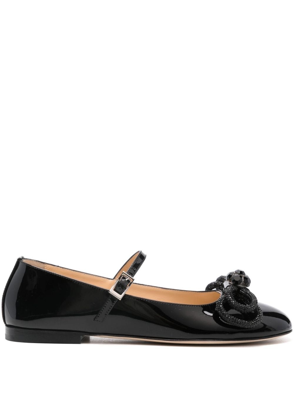 Double Bow ballet flat Highlights - Black - Calf leather - Patent finish - Round toe - Signature double bow - Crystal embellishment - Branded leather insole - Leather lining - Low stacked heel - Leather sole - Logo-engraved silver-tone hardware - Buckle-strap fastening - This piece comes complete with a protective dust bag. Made in Italy Composition Outer: Patent Calf Leather 100% Lining: Calf Leather 100% Sole: Calf Leather 100% SIZE & FIT Measurement HEEL 0.39 in(1 cm)