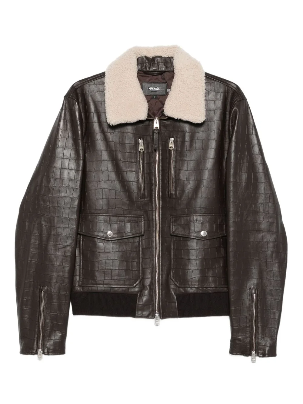 CHANCE-NV Croc-Embossed Leather Jacket with Shearling Collar