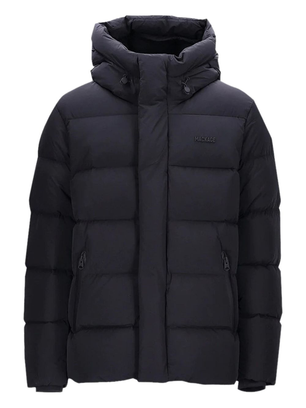 hooded puffer jacket Highlights - Black - Hooded - Zip fastening - Puffer design - Front zip pockets - Tonal design Imported Composition Recycled Nylon 82%, Lycra 18% Washing instructions Read Manufacturer Guidelines