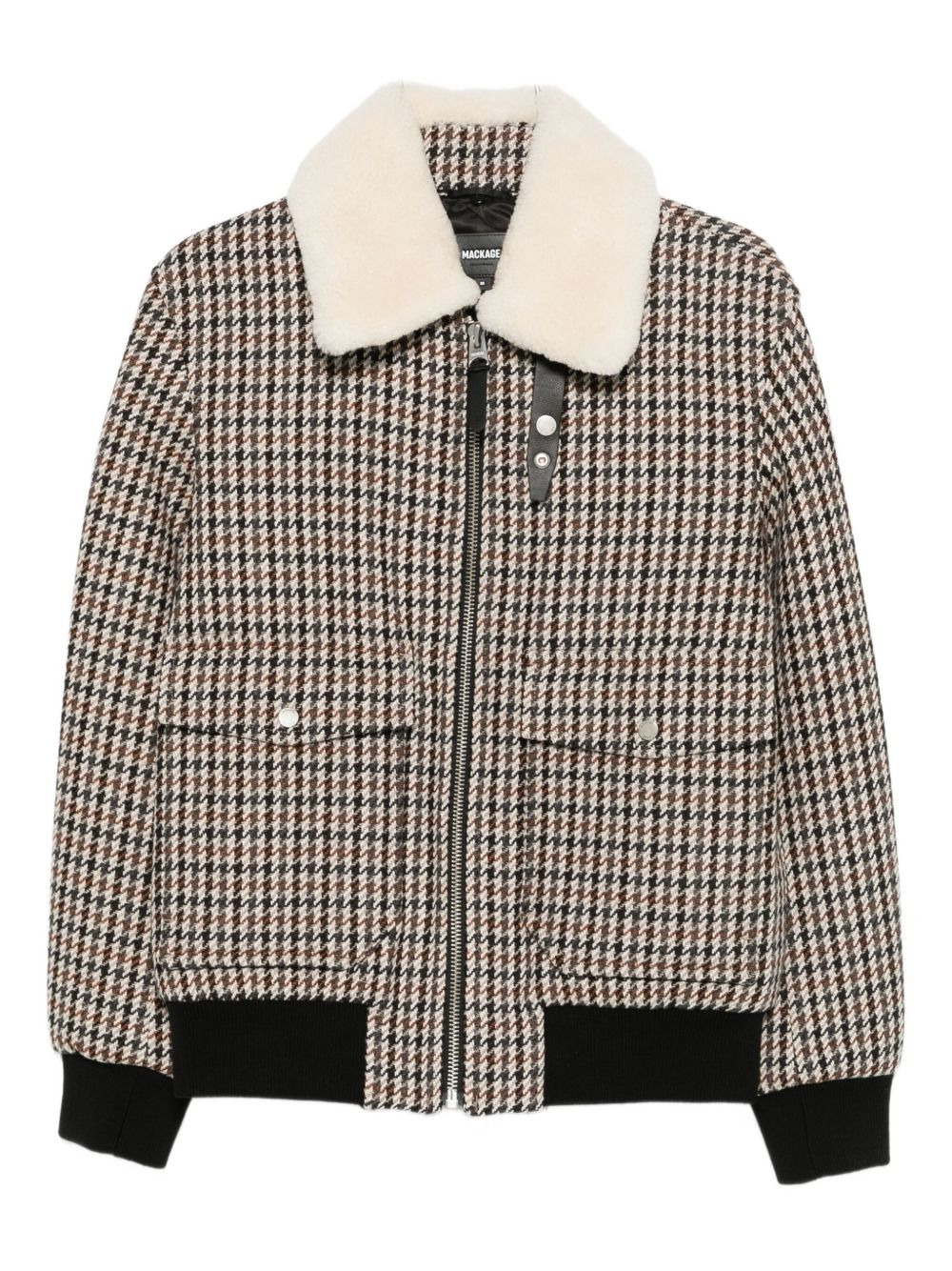 houndstooth-pattern shearling-collar jacket Highlights - Beige - Houndstooth pattern - Zip fastening - Front pockets - Ribbed hem - Shearling collar Imported Composition Wool 100% SIZE & FIT Model measurements Height 5 ft 10 in(1.77 m) Bust/Chest 32.28 in(82 cm) Hips 35.03 in(89 cm) Waist 25.19 in(64 cm) Washing instructions Read Manufacturer Guidelines