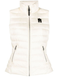 logo-patch puffer gilet Highlights - Cream white - Recycled nylon - Down-feather filling - Logo patch at the chest - Quilted padded design - Stand-up collar - Front zip fastening - Sleeveless - Slim cut - Two side zip-fastening pockets - Straight hem Imported Composition Lining: Recycled Nylon 100%, Duck Down 90%, Feather 10% Outer: Recycled Nylon 100% SIZE & FIT Model measurements Height 5 ft 11 in(1.8 m) Bust/Chest 31.49 in(80 cm) Hips 36.22 in(92 cm) Waist 25.59 in(65 cm) FittingInformation Designed for a slim fit that sits just away from the body offering a close yet comfortable fit Made from a lightweight non-stretch fabric This piece fits true to size – take your usual size Washing instructions Machine Wash