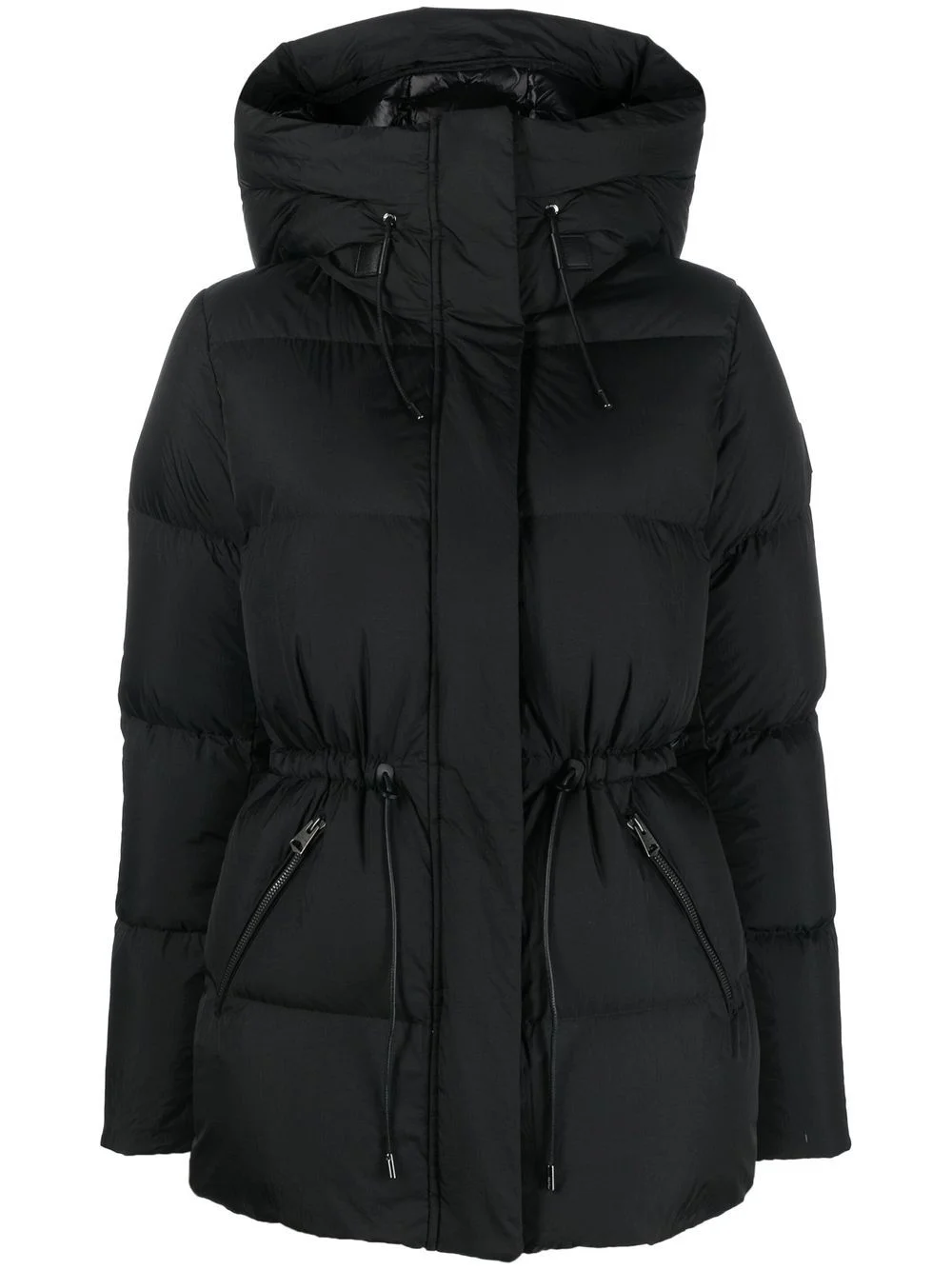 padded zip-up coat jet black padded design down-feather filling classic hood front zip fastening long sleeves two side zip-fastening pockets Imported Composition Lining: Feather Down 100%, Nylon 100% Outer: Nylon 100% SIZE & FIT Model measurements Height 5 ft 11 in(1.8 m) Bust/Chest 33.07 in(84 cm) Hips 37.4 in(95 cm) Waist 25.19 in(64 cm) Measurement SLEEVE LENGTH 24.8 in(63 cm) LENGTH 29.92 in(76 cm) WAIST 38.58 in(98 cm) BUST 41.73 in(106 cm) Shoulder Width 16.53 in(42 cm) FittingInformation This piece fits true to size. We recommend you get your regular size Cut for a loose fit Made with a mid-weight non-stretch fabric Washing instructions Machine Wash