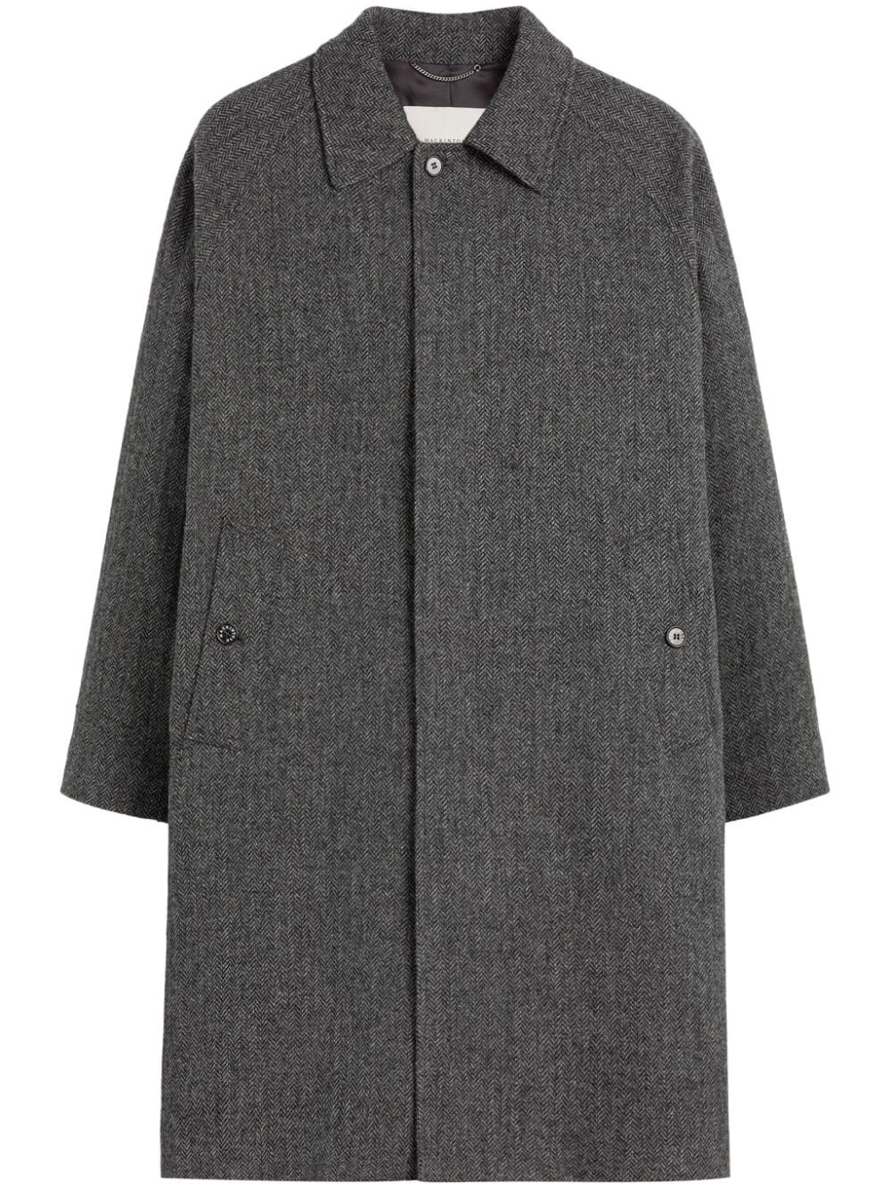 Belford wool coat Highlights - Grey - Wool - Front button fastening - Classic collar - Two side welt pockets - Straight hem - Mid-length Made in United Kingdom Composition Lining: Cupro 100% Outer: Wool 100% SIZE & FIT Measurement CHEST 50.39 in(128 cm) LENGTH 40.74 in(103.5 cm) WAIST 49.21 in(125 cm)
