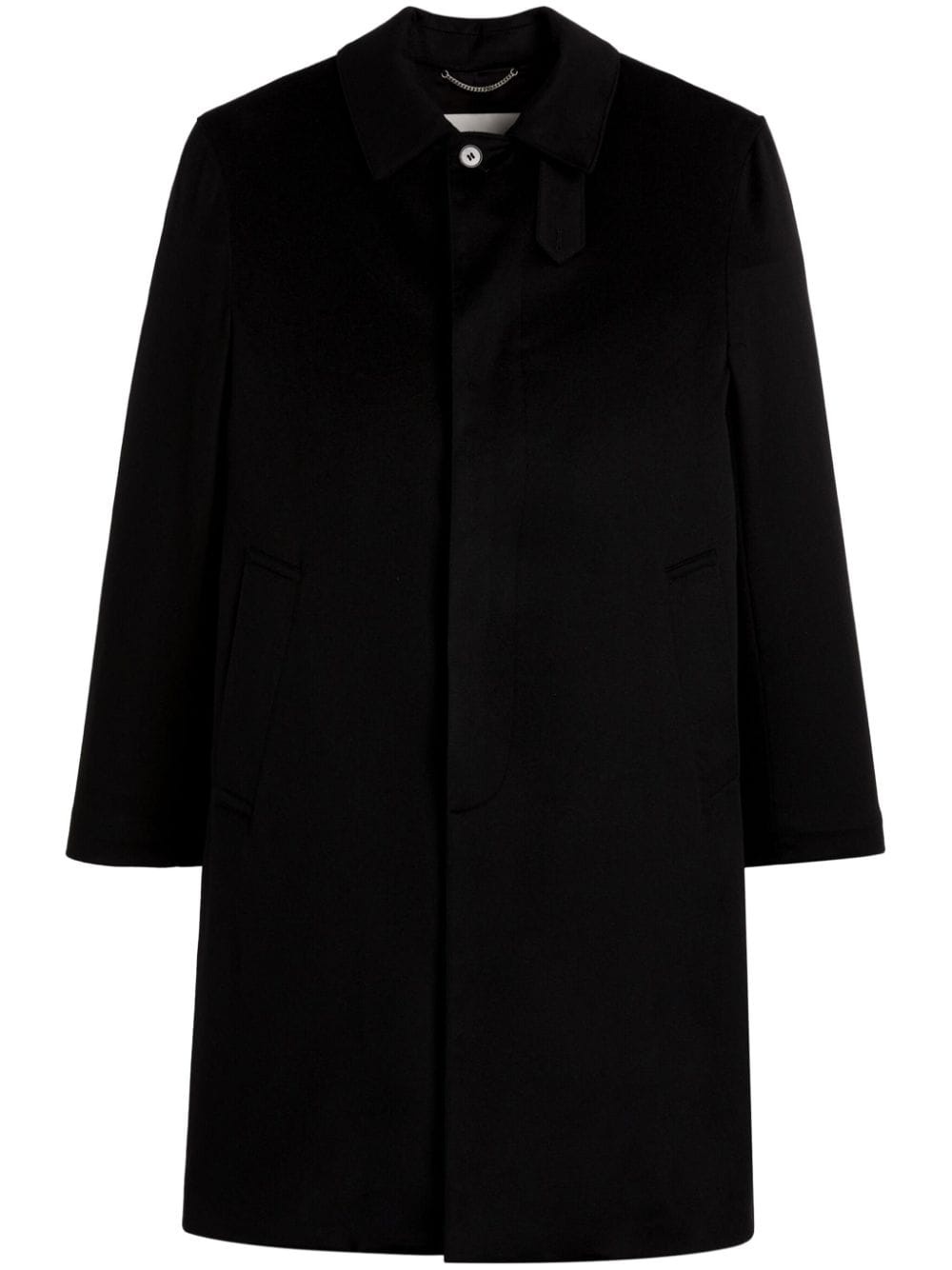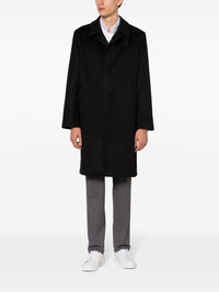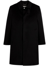 Dunkeld cashmere coat Highlights - Black - Cashmere - Concealed front fastening - Classic collar - Two side welt pockets - Long sleeves - Straight hem Made in United Kingdom Composition Lining: Cupro 100% Outer: Cashmere 100% SIZE & FIT Measurement CHEST 49.21 in(125 cm) SLEEVE LENGTH 26.51 in(67.3 cm) LENGTH 39.21 in(99.6 cm) WAIST 49.6 in(126 cm) Shoulder Width 19.4 in(49.3 cm) Washing instructions Dry Clean Only