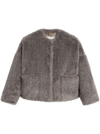faux-fur jacket Highlights - Medium grey - Recycled polyester - Faux-fur design - Concealed front fastening - Round neck - Long sleeves - Two front patch pockets - Straight hem Made in Italy Composition Recycled Polyester 100% SIZE & FIT Measurement LENGTH 21.65 in(55 cm) BUST 49.21 in(125 cm) Shoulder Width 28.74 in(73 cm)