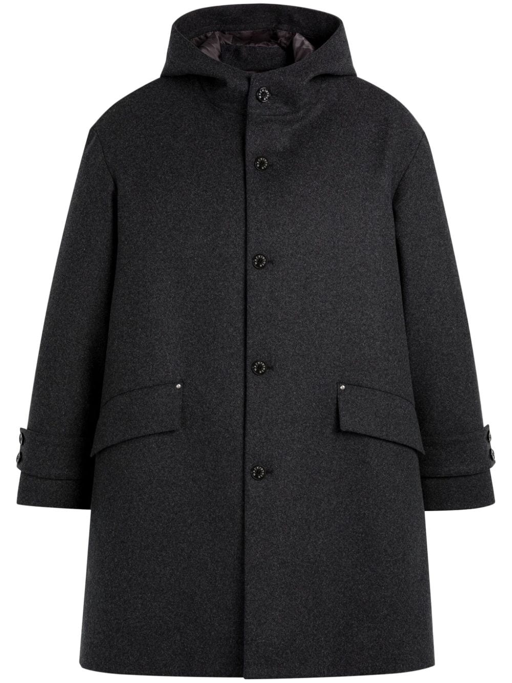 HUMBIE HOOD CHARCOAL WOOL OVERCOAT