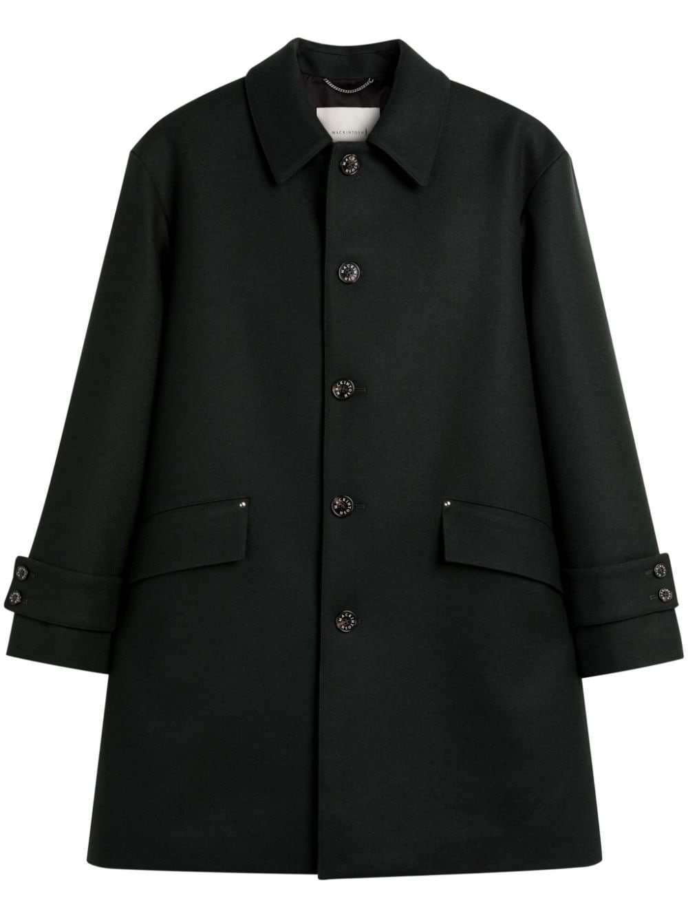 Humbie wool coat Highlights - Dark green - Wool - Front button fastening - Classic collar - Two side flap pockets - Long sleeves - Buttoned cuffs - Straight hem Made in United Kingdom Composition Lining: Cupro 100% Outer: Wool 100% SIZE & FIT Measurement CHEST 51.96 in(132 cm) SLEEVE LENGTH 24.52 in(62.3 cm) LENGTH 37.2 in(94.5 cm) WAIST 52.75 in(134 cm) Shoulder Width 21.81 in(55.4 cm)