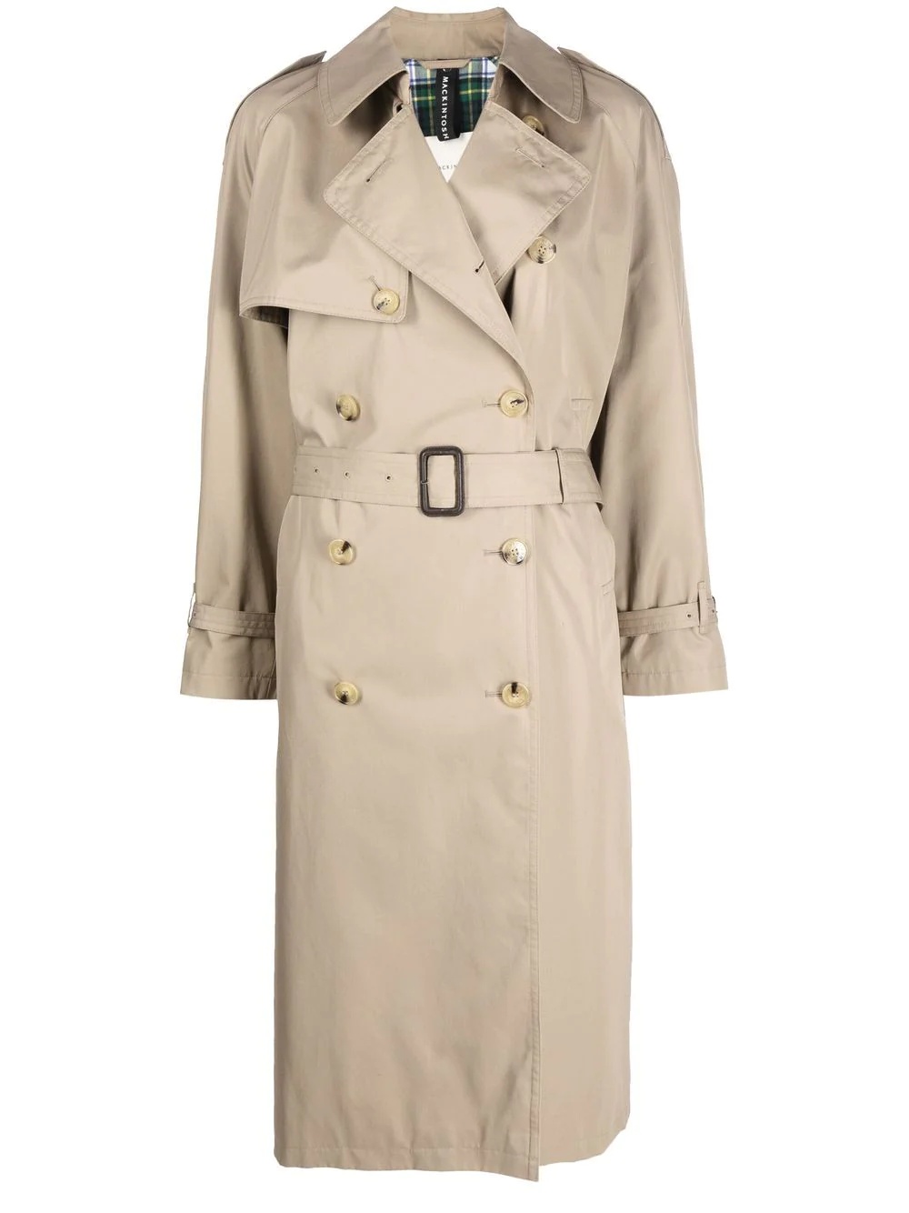 JAMIE gabardine-weave trench coat Boasting a gabardine cotton construction, this trench coat from Mackintosh is crafted to a classic double-breasted silhouette. The timeless design is finished in a soft sand-beige hue. Made in United Kingdom Composition Outer: Cotton 100% Lining: Cotton 100% SIZE & FIT Model measurements Height 5 ft 10 in(1.77 m) Bust/Chest 32.28 in(82 cm) Hips 36.22 in(92 cm) Waist 24.4 in(62 cm) Measurement BUST 55.9 in(142 cm) LENGTH 47.44 in(120.5 cm) SLEEVE LENGTH 32.67 in(83 cm) WAIST 55.11 in(140 cm) FittingInformation This piece fits true to size. We recommend you get your regular size Cut for a loose fit. Comes with an adjustable belt for a flexible fit at the waist Made with a mid-weight fabric Washing instructions Dry Clean Only