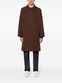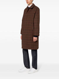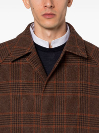 BELFORD BROWN X ORANGE CHECK WOOL BALMACAAN COAT