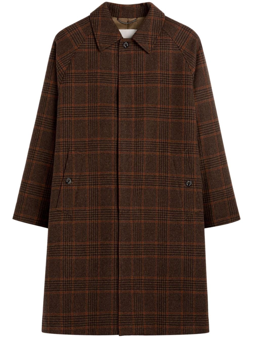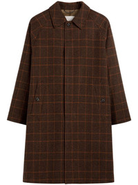 x The Woolmark Company coat Highlights - Brown - Wool - Check pattern - Concealed front fastening - Classic collar - Two side welt pockets - Long sleeves - Straight hem Made in United Kingdom Composition Outer: Wool 100% Lining: Cupro 100% SIZE & FIT Measurement CHEST 53.54 in(136 cm) LENGTH 41.92 in(106.5 cm) WAIST 52.36 in(133 cm)