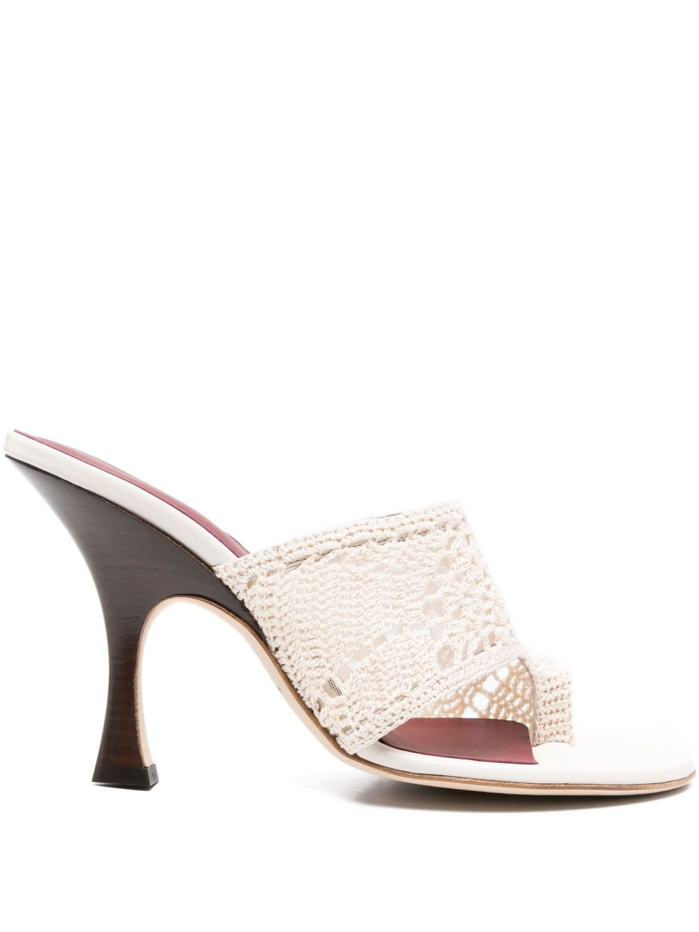 100mm crochet thong heeled sandals Highlights - Cream - High heel - Open toe Made in Italy Composition Outer: Calf Leather 100%, Fabric 100% Lining: Fabric 100%, Calf Leather 100% Sole: Calf Leather 100% SIZE & FIT Measurement HEEL 3.93 in(10 cm)