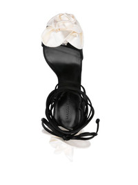 110mm floral-applique sandals Highlights - Black - Satin finish - Floral applique - Tie-fastening ankle strap - High stiletto heel - Single toe strap - Almond open toe - Branded footbed - Leather lining - Leather sole Made in Italy Composition Silk 100% SIZE & FIT Measurement HEEL 4.72 in(12 cm) Sole height 0.39 in(1 cm)