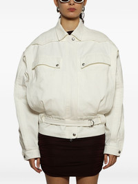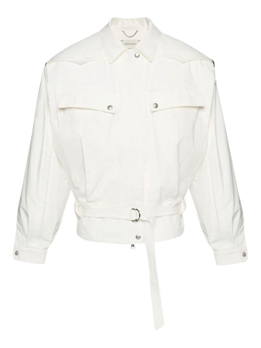 belted bomber jacket Highlights - White - Two chest pockets - Zip fastening - Adjustable belt - Dropped shoulders - Buttoned cuffs Imported Composition Cotton 100% Washing instructions Read Manufacturer Guidelines