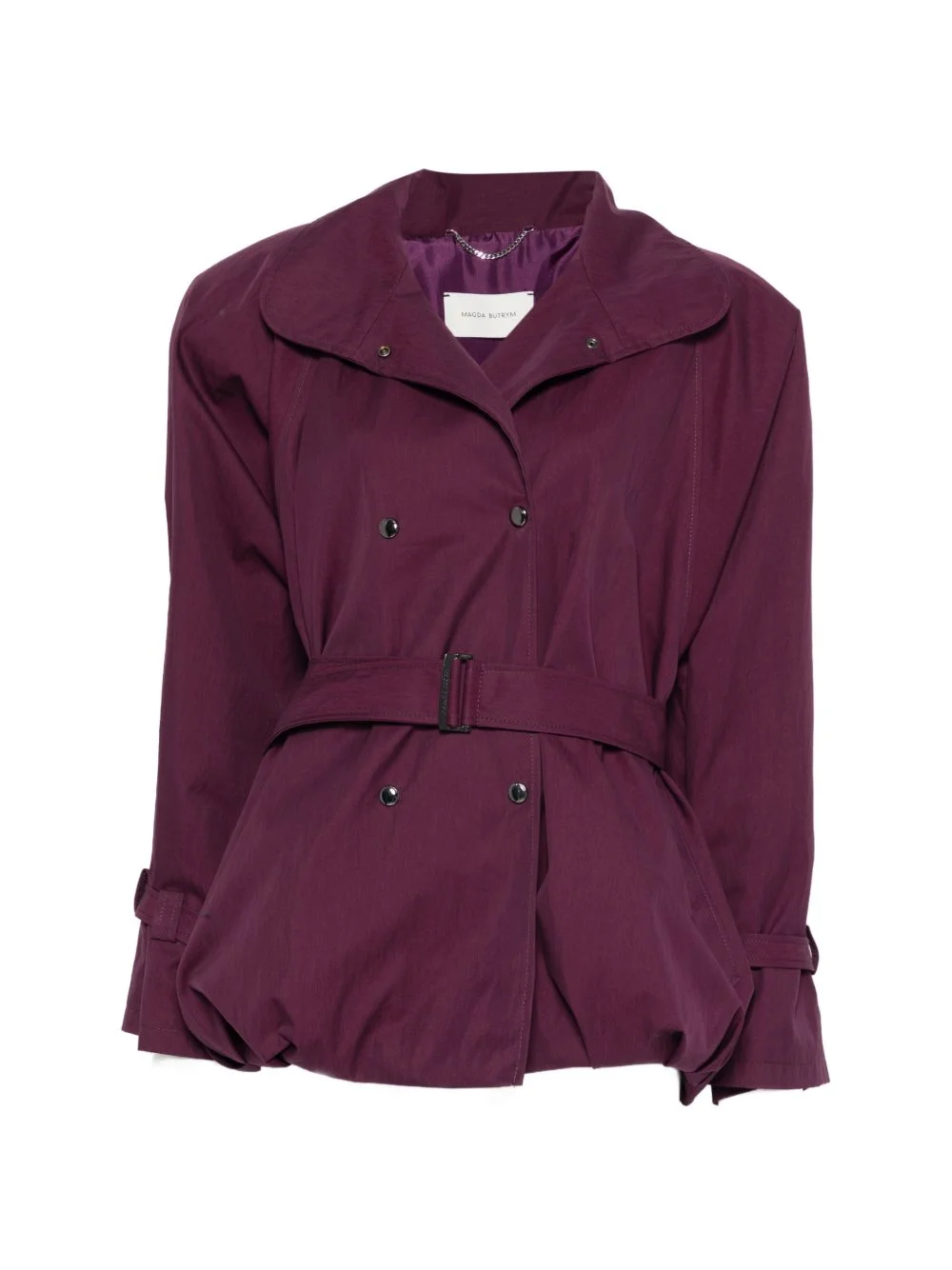 belted double-breasted jacket Highlights - Purple - Double-breasted press-stud fastening - Belted waist - Belted cuffs Imported Composition Outer: Cotton 75%, Polyamide 25% Lining: Silk 100% Washing instructions Dry Clean Only