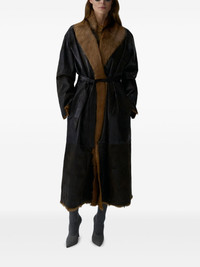Shearling wrap coat in dark brown