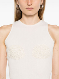 crochet-detailed top Highlights - White - Cashmere - Knitted construction - Crochet panelling - Round neck - Sleeveless - Racerback - Straight hem Made in Italy Composition Cashmere 100%, Cotton 100% SIZE & FIT Model measurements Height 5 ft 9 in(1.75 m) Bust/Chest 30.7 in(78 cm) Hips 35.03 in(89 cm) Waist 23.62 in(60 cm) FittingInformation Designed for a slim fit that sits just away from the body offering a close yet comfortable fit Made with a midweight knit, this piece offers some stretch